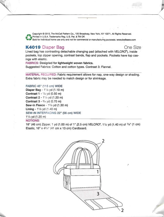 Kwik Sew K4019 Diaper Bag Sewing Pattern Uncut Etsy Australia